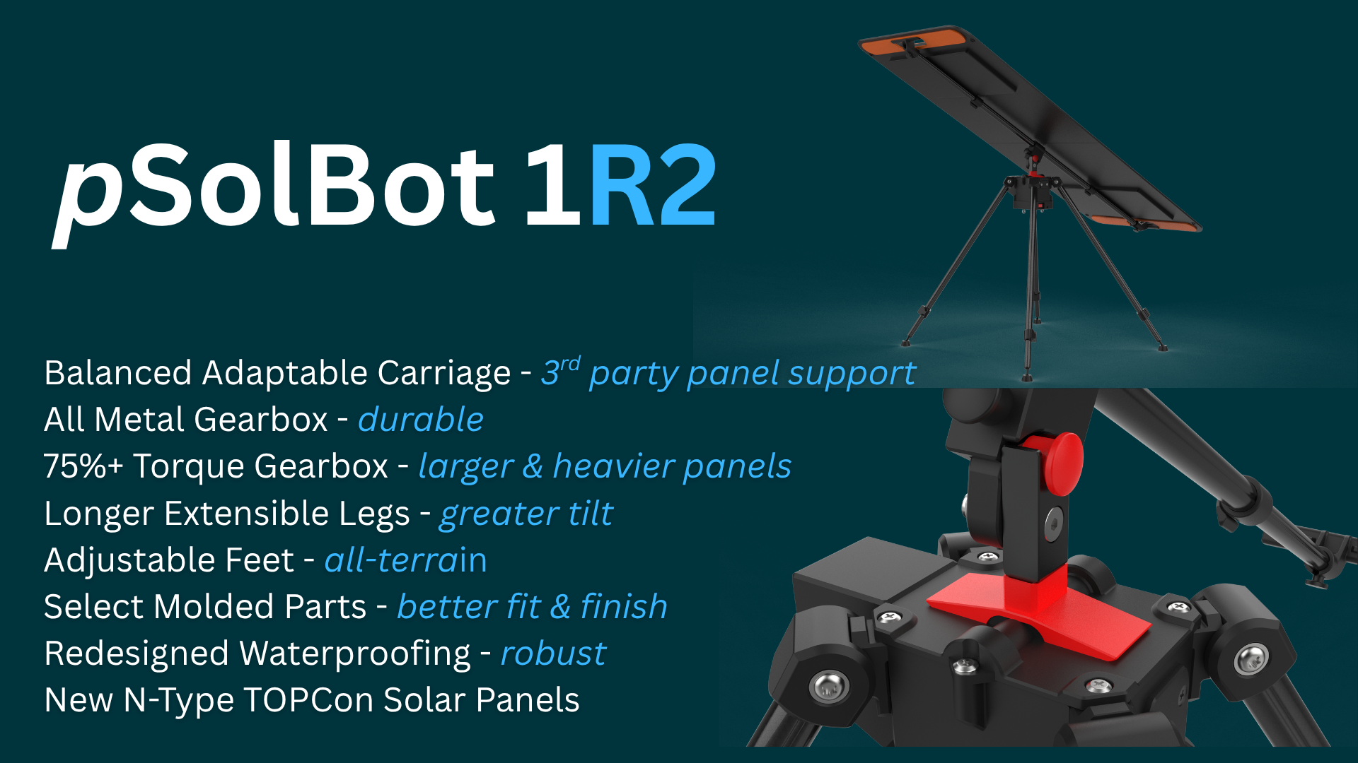 • Adaptable Carriage — Mount a wider range of third-party solar panels.